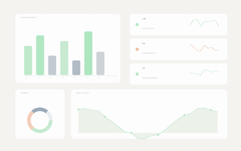 Go from raw numbers to beautiful, interactive charts. With a full library of chart types and deep customization, you can present your findings with clarity and impact.